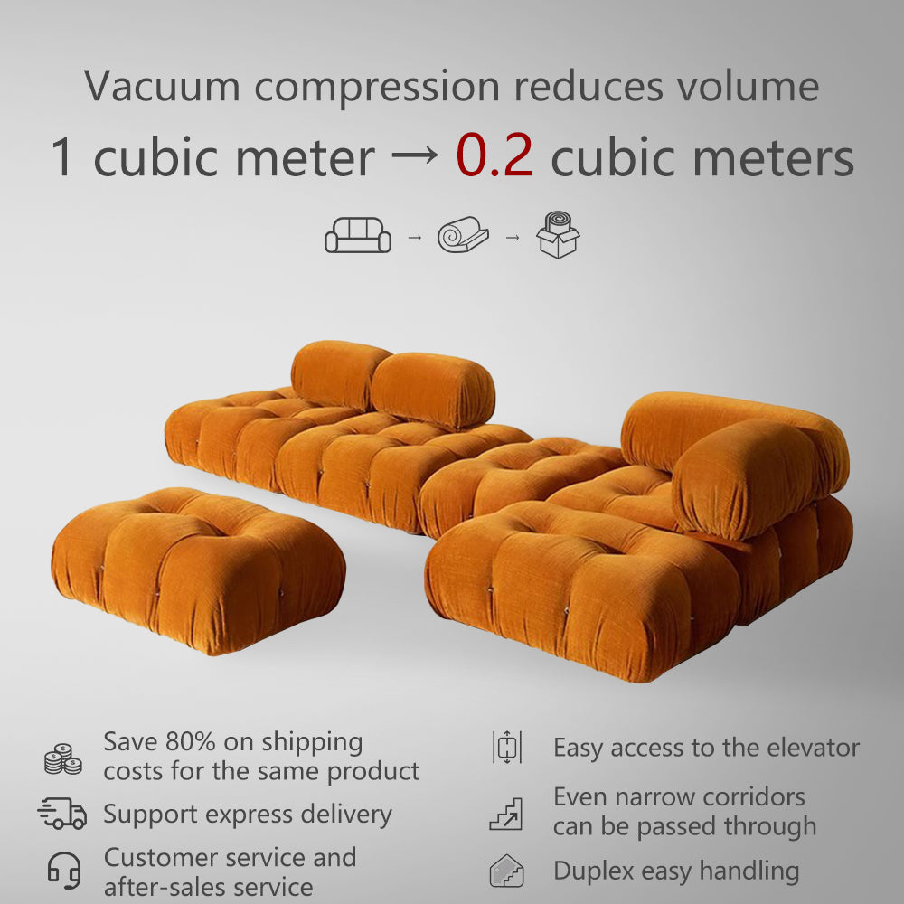 Vacuum Compression Straight Block Cream Fabric Sofa