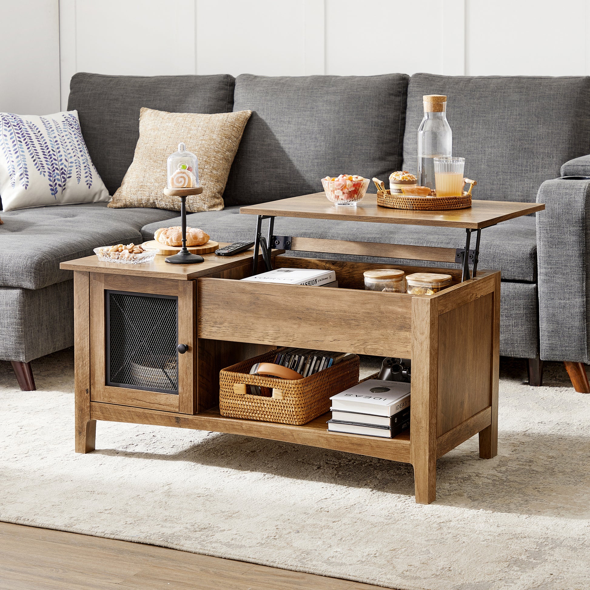 Farmhouse Industrial Center Table Hidden Compartment Lift Top Coffee Table With Storage