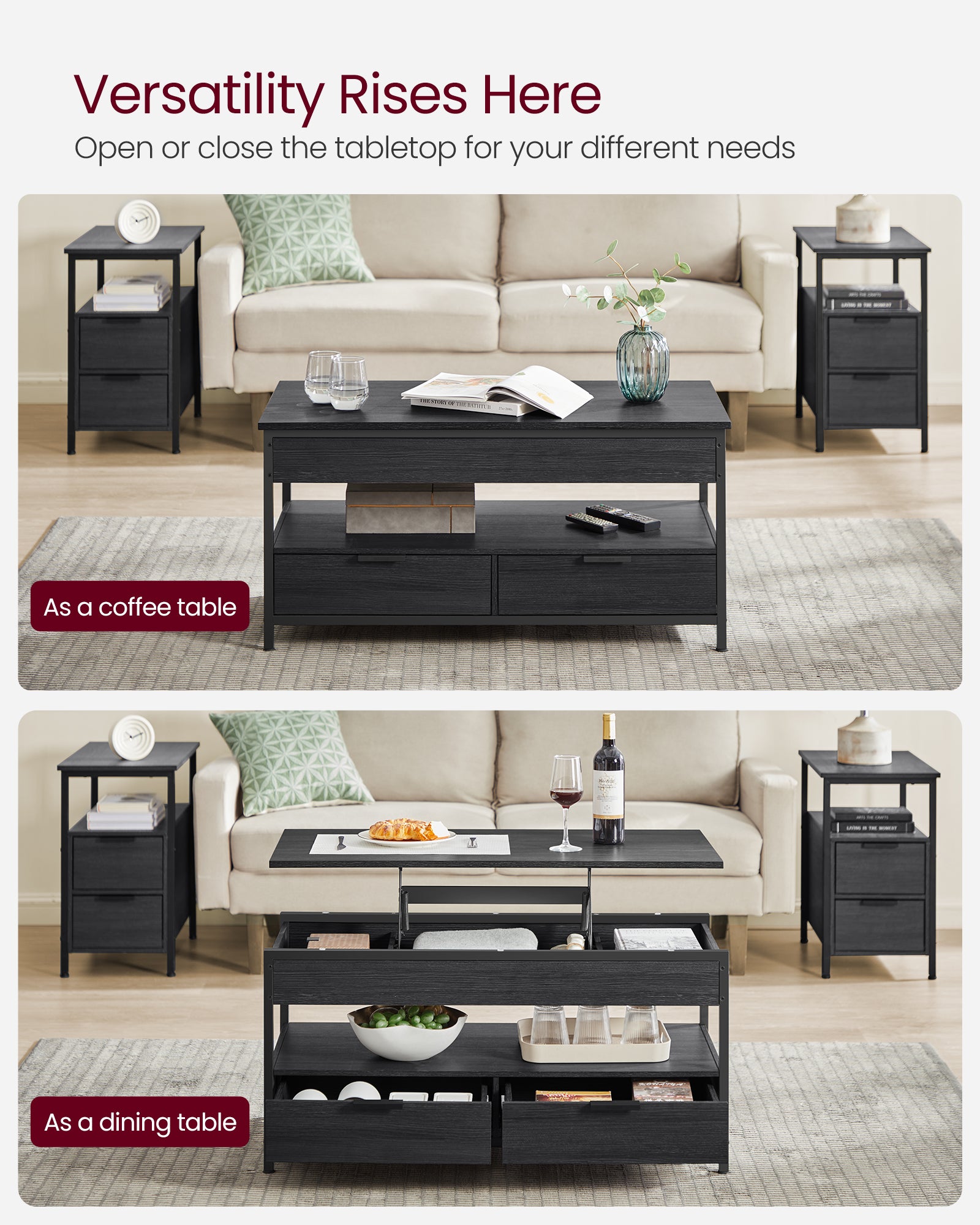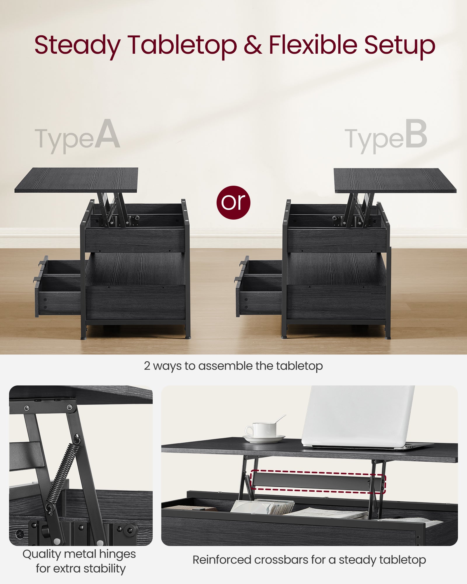 Multifunctional Folding Lift Top Coffee Table With Hidden Storage for Living Room
